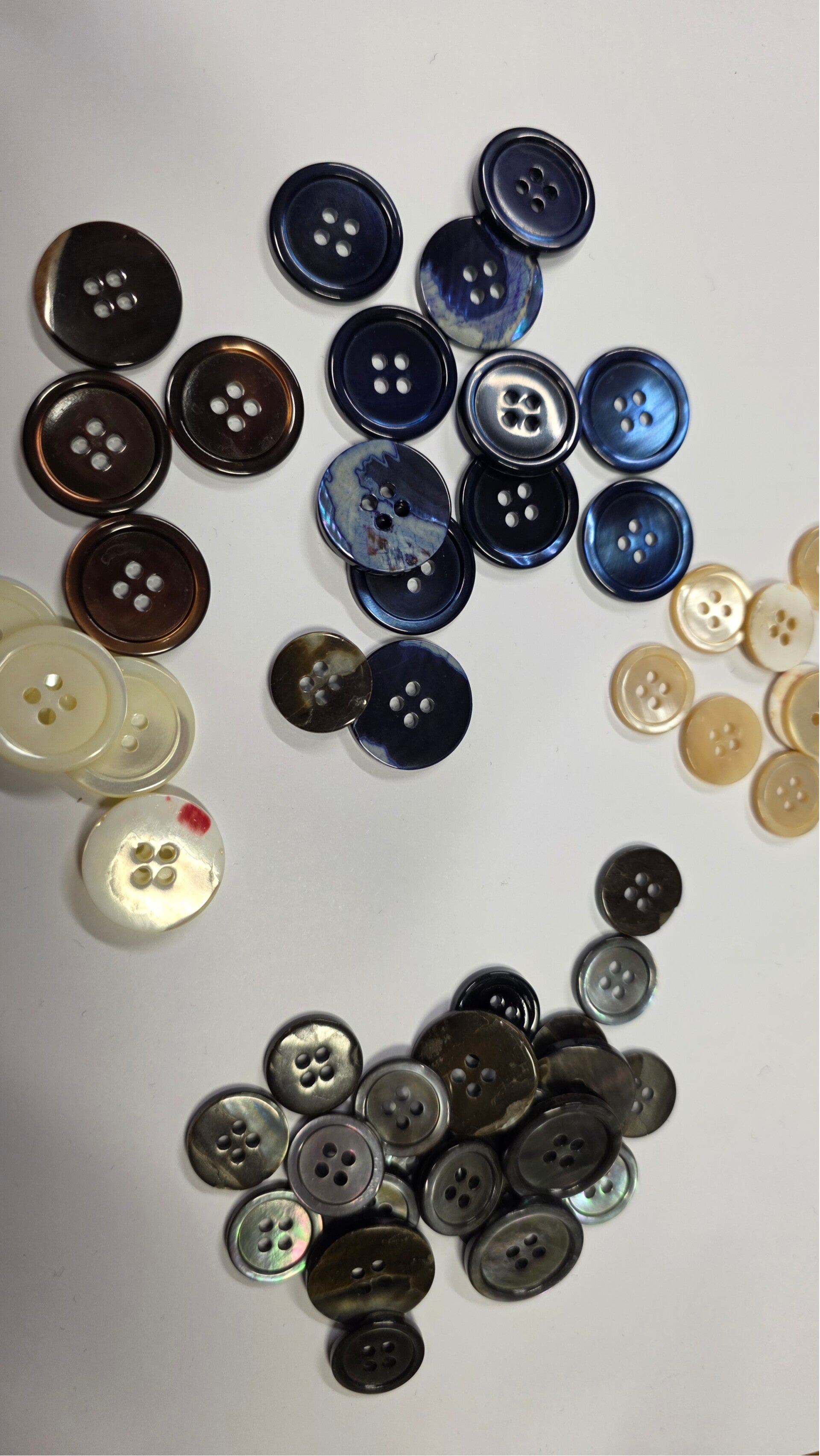 Bottoni in vera Madreperla nei lineati 32 da giacca e 24 manica , nei colori classici e vendita ad abbottonatura mono o doppio petto